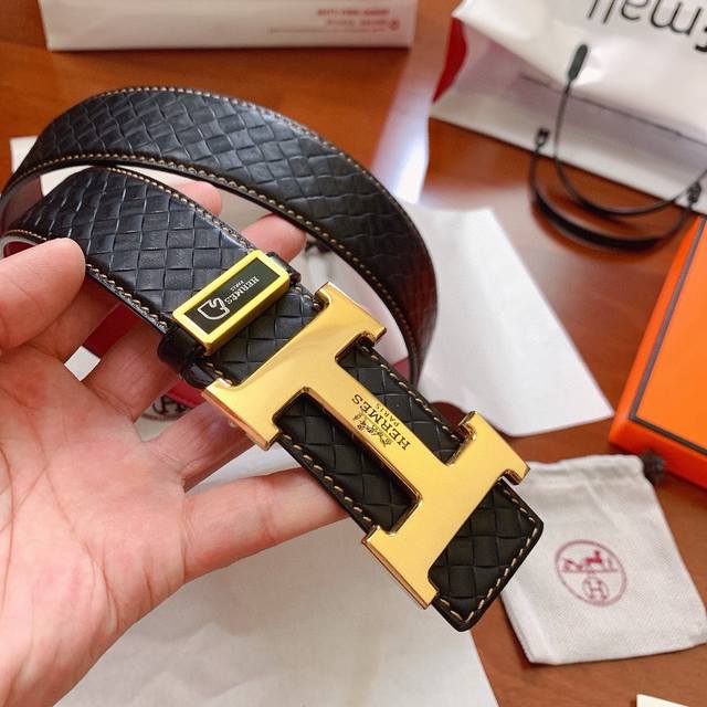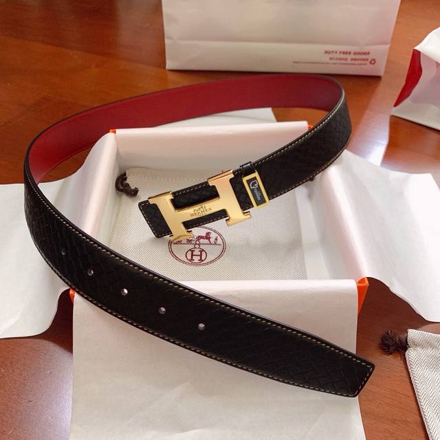 爱马仕新款纯钢自动扣系列 宽度3.5Cm 配正版包装 顶级高端精工 无缝带 贴合工艺 五金精品打磨材质 高端品质压花进口皮...