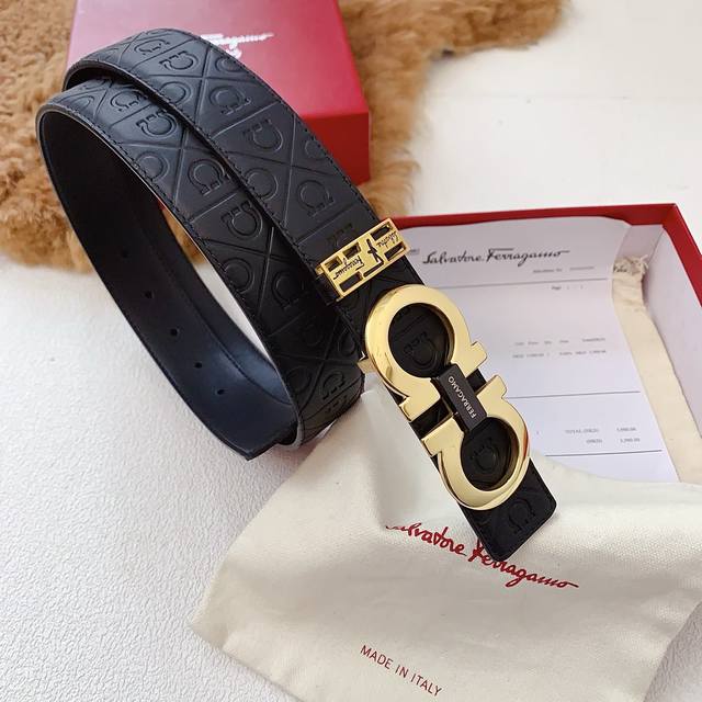 菲拉格慕新款同步。配正版包装经典版型精品扣,双面可用进口头层皮料,金属logo标识,看货看品质带宽3.5Cm,对版对货,全套...