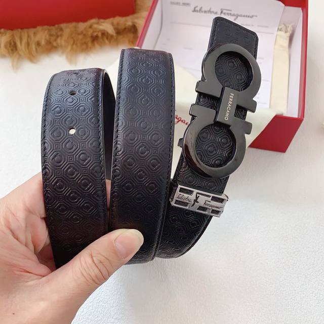 菲拉格慕 双面意大利进口头层手掌纹牛皮,搭配真空电镀烤漆纯铜扣,经典款式,专柜有售,市场顶级品质,支持验货...