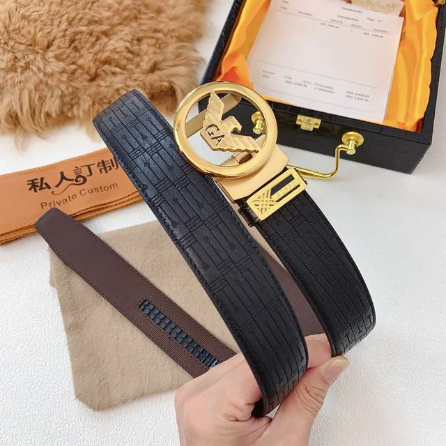 配官网正版包装阿玛尼官网同步正版,原单精品纯钢自动扣,真空电镀不掉色,新款双面进口意大利鹿茸皮纹系列,版型时尚高档 皮带宽度3.4Cm 高清实拍大图 保质保量