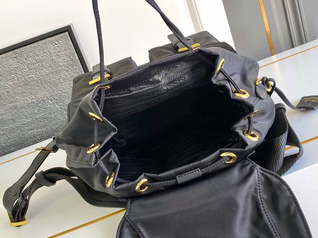 这款实用而创新的背包采用进口尼龙面料,可调式肩带和编织提手,可拆卸Re-Edition皮革钥匙环,正面搭扣翻盖口袋,翻盖涂珐琅三角形金属徽标,束绳开合,徽标印花Re-Nylon衬里配两个内袋,其中一个带拉链,容量客间大。经典又实用,又是一款永久不过时的爆款