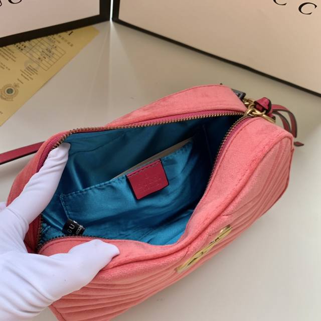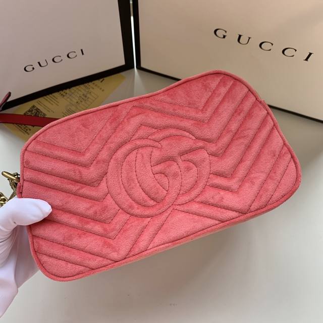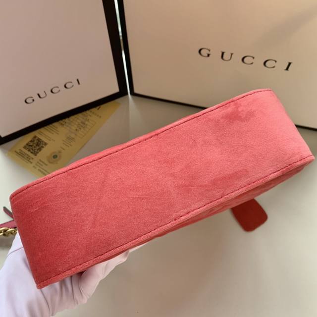 / 实拍# 款号:447632天鹅绒 尺寸:24-13-7Cm Gg Marmont 系列相机包。天鹅绒面料与古铜色五金的碰撞,配与丝绸质感内里,注定是属于秋冬的一