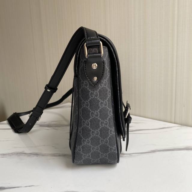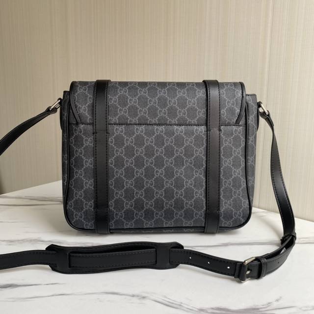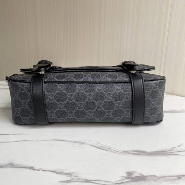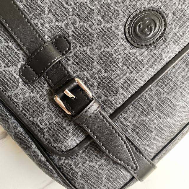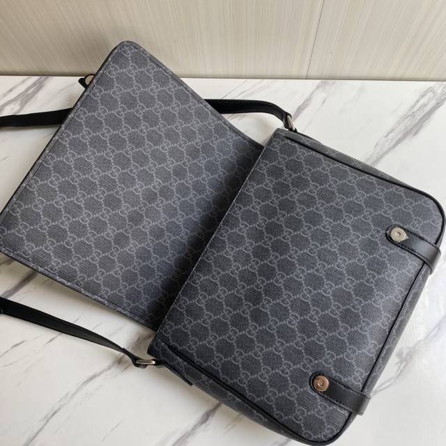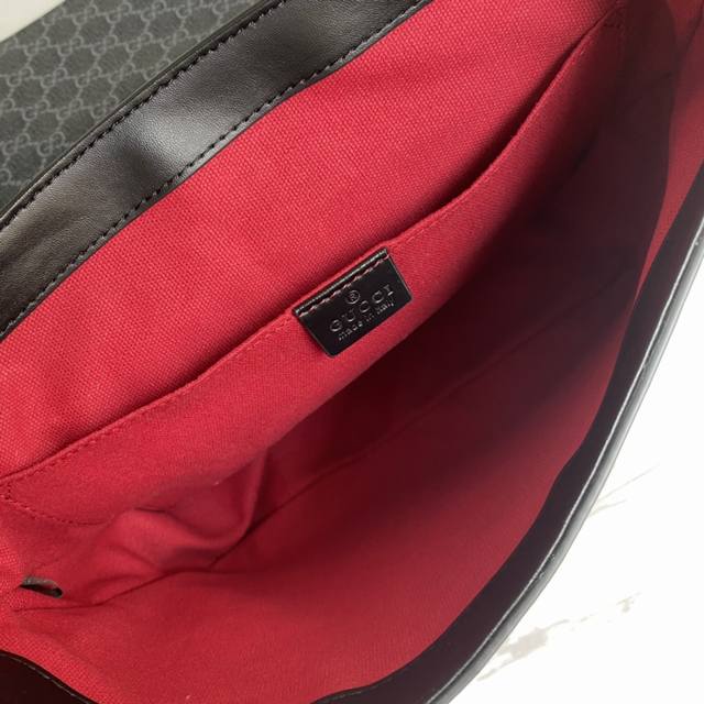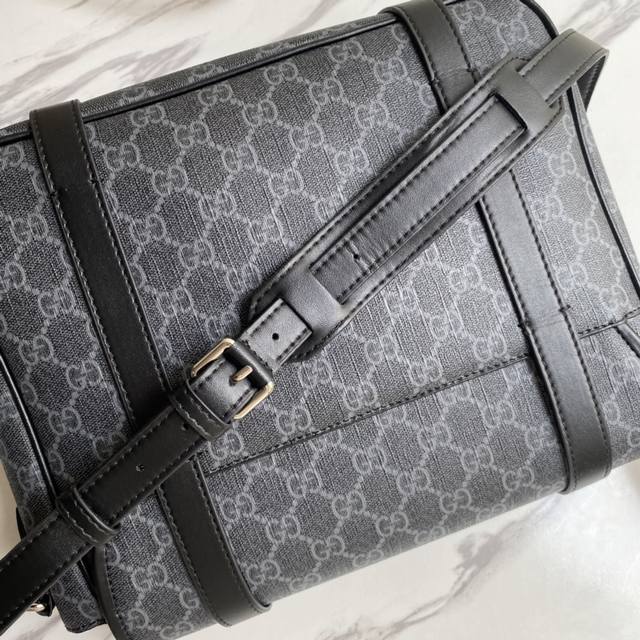 / 实拍# 型号:658542黑胶 尺寸:28-24-8.5Cm 这款单品采用了第一款信使包的原始设计元素,强调宽敞和实用的包内空间。选用品牌Gg Supreme帆