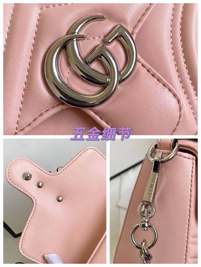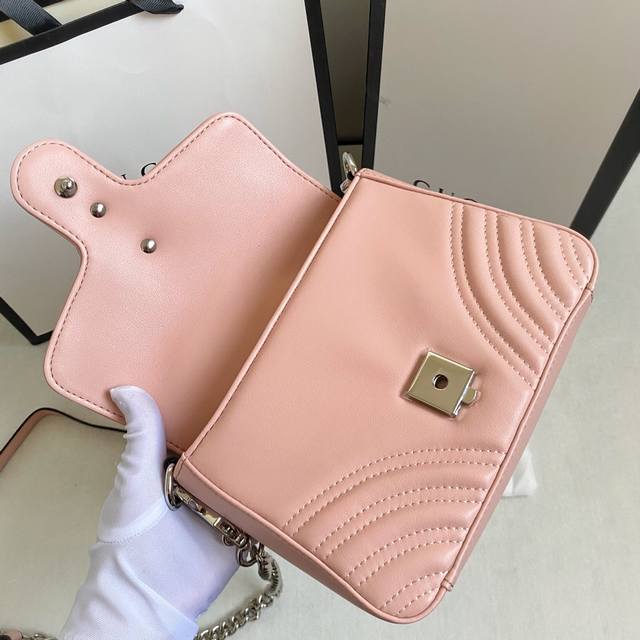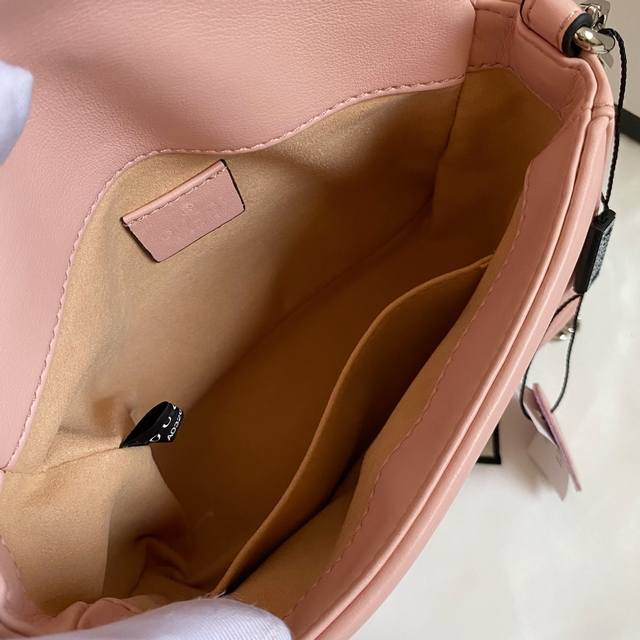 这款Gg Marmont系列迷你手提包结构柔软采用小牛皮,21Cm的尺寸上身效果可爱十足,可以手提 斜挎 容量也很赞无论是高大还是娇小的小仙女们都可以驾驭~