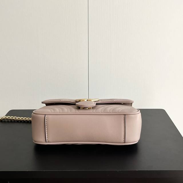 配全套原厂绿盒包装 新品 Gg Marmont系列超迷你手袋 这款超迷你手袋采用粉色绗缝V型皮革制成...