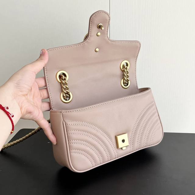 升级版实拍# 款号:446744奶茶 尺寸:22-6-13Cm Gg Marmont 小号 小号较小可爱 空间容量特能装 年度使用频率最高的当然是非G家这个Ma