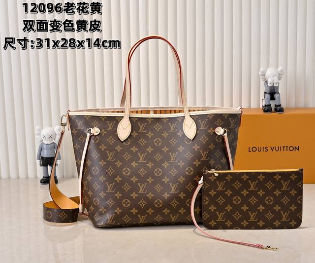 广州升级原版 子母包配双面变色黄皮 款号M12096 11947 12257 老花红 老花黄 老花红色 Neverfull Inside Out 中号手袋 Ne