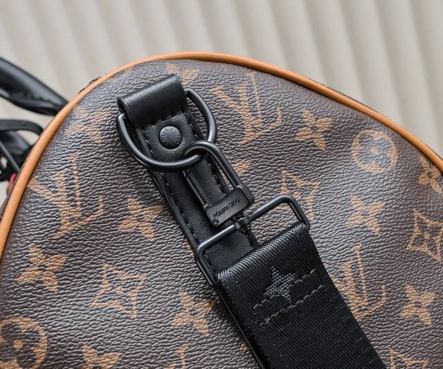 独家实拍-升级版 M46703 M41416 本款 Keepall BandoulièRe 45 旅行袋以 Monogram Macassar 涂层帆布引入经典底蕴。鲜明皮革裁出侧带,顶部皮革手柄和金属件再添沉稳气息,可拆卸并调节的织物肩带织入路易威登标识。尺寸:45.27.20