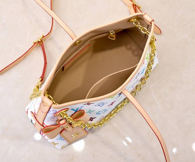 新款 官网对版做法 独家实拍M13014老花 中古小号 灵感源自档案馆的复古细节,明快的内衬色调为 Monogram 经典帆布增加了更多活泼生动之感。轻便小巧,