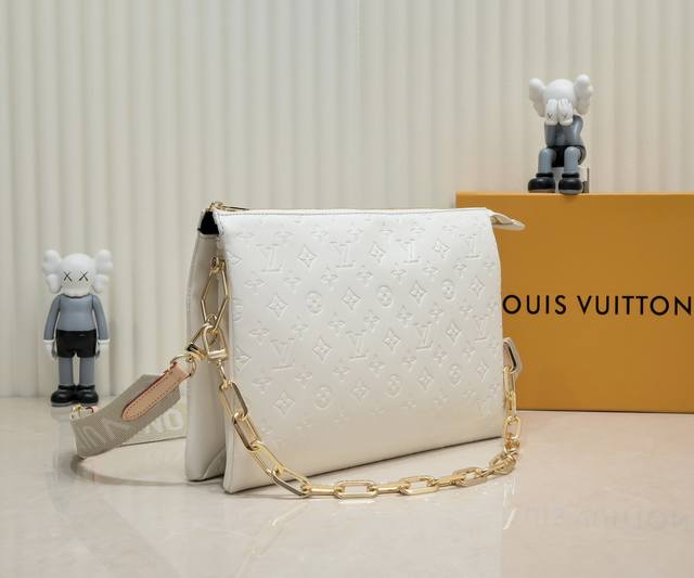 独家实拍-升级版 头层羊皮 大号M57783黑色M20771灰色M50268 M57782 M57790墨绿色Coussin 中号手袋于 春夏时装秀俘获视线 34 X 24 X 12 厘米