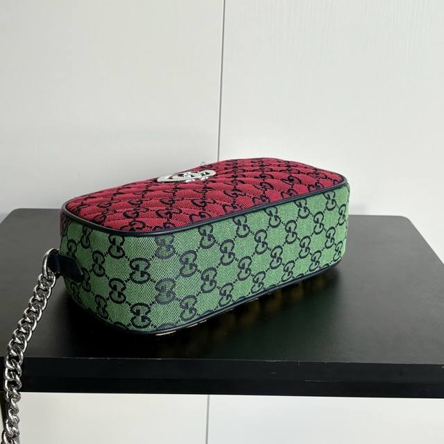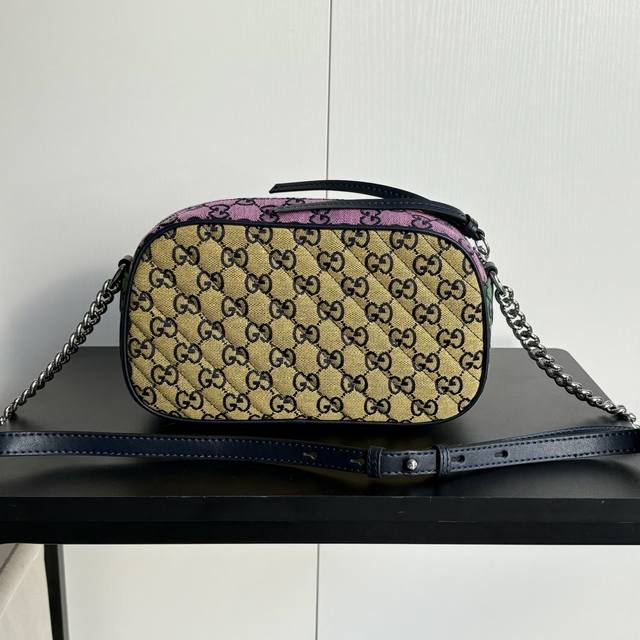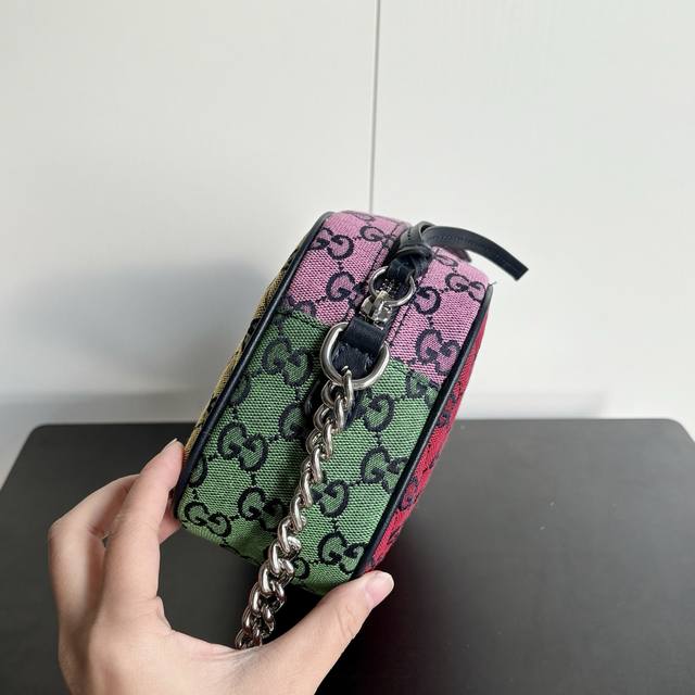 升级版实拍# 型号:447632 尺寸:24-13-7Cm Gg Marmont春夏系列相机包 包身采用帆布配皮减轻自重 链条搭配牛皮肩带使单肩斜挎更轻松 拉链