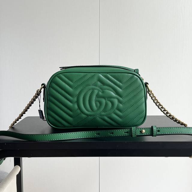 升级版实拍# 型号:447632绿色 尺寸:24*13*7牛皮 Gg Marmont New Disco Bag Ins又一大热门,网红潮人们街拍出镜率超高 款