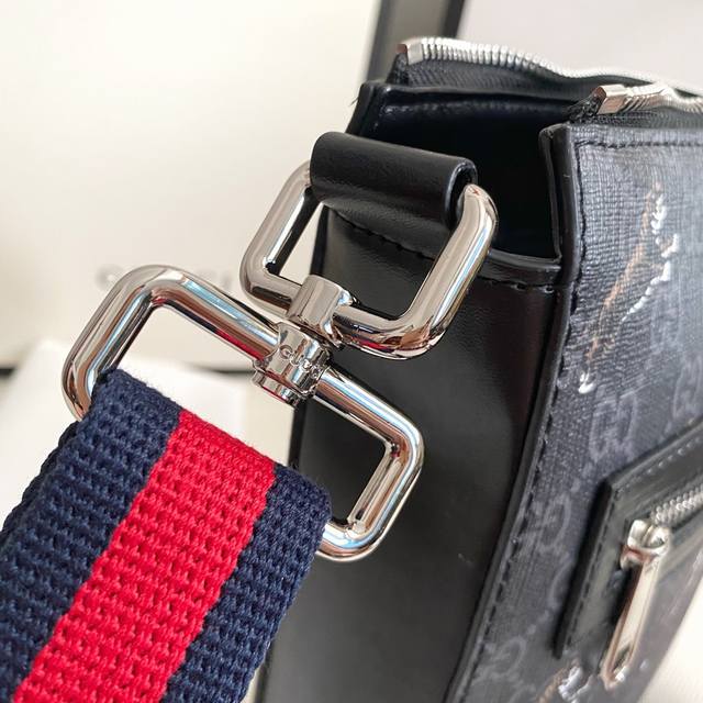 升级版原单五金,My Good Life官方最新邮差包,配以独特专利的蓝红织带。 外选用Gg Supreme高级人造Pvc,环保材料,配以进口粒面Napa纹牛皮