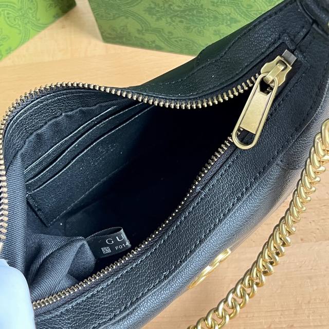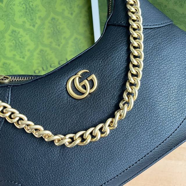 实拍# 款号:731817黑色 尺寸:25197Cm Gucci新款Hobo月牙包来啦 一共3条肩带 可以单肩、斜挎、腋下多种背法 纯色超级好搭配 一整个氛围感