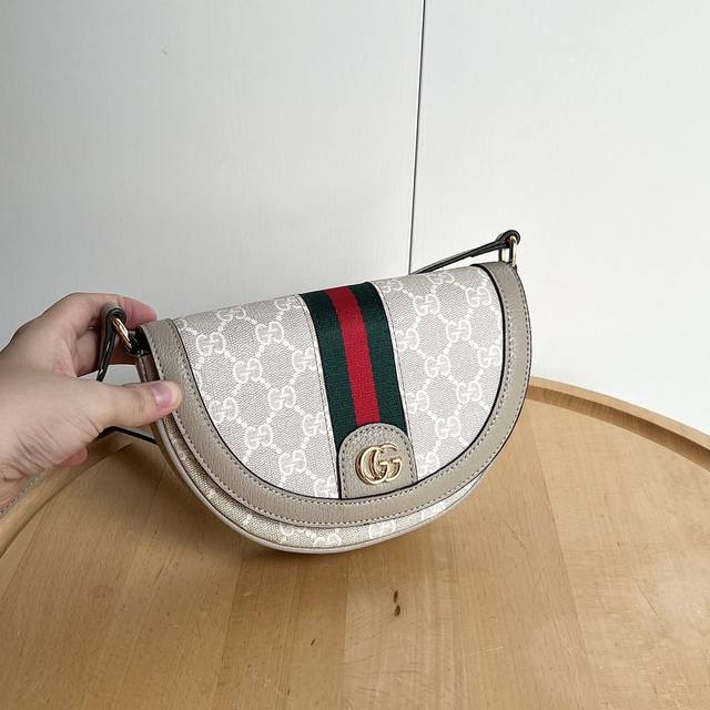 / 实拍# 款号:757309半月包 尺寸:宽20X高13.5X侧宽4Cm 经典Ophidia斜挎小包 半月磁吸扣 翻盖设计 小巧方便