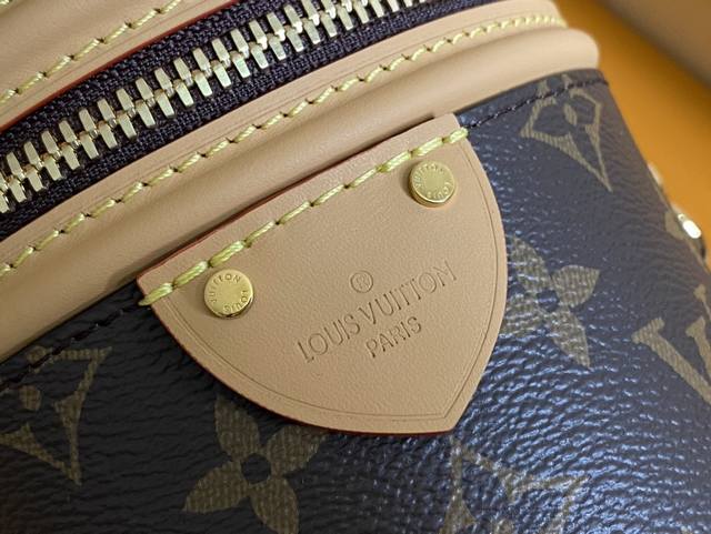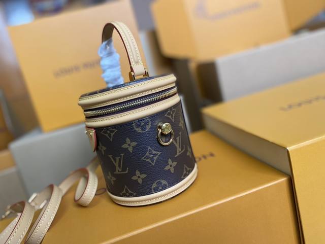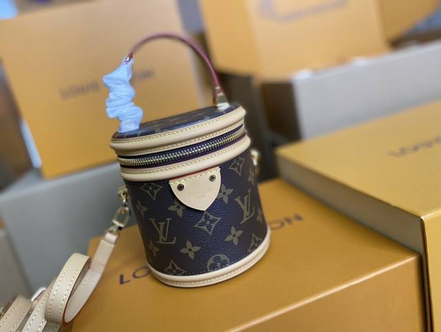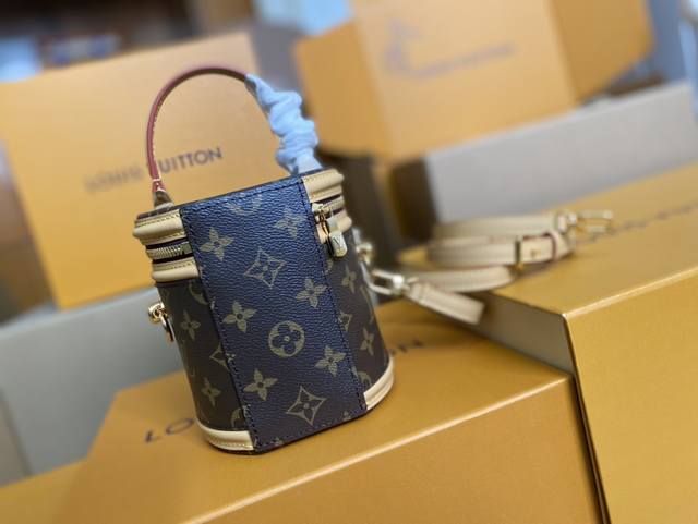 / 顶级原单 M82952本款 Nano Cannes 手袋以 Monogram 帆布裁出圆筒构型,与化妆包设计不谋而合。皮革饰边和标签上压印的路易威登标识丰富工致
