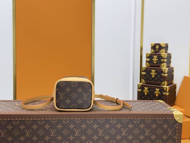全钢五金 变码芯片 配全套包装 独家实拍 M81266 本款 Nano Noé 手袋浓缩 1932 年 Noé 手袋的经典构型,以 Monogram 帆布和牛皮革饰边融合传统设计和当代功能。充裕空间可容纳钥匙、卡夹和手机等随行所需,可拆卸手柄和可拆卸并调节的肩带实现多种背携方式。尺寸:13.0 X 16.0 X 10.0 厘米 长 X 高 X 宽