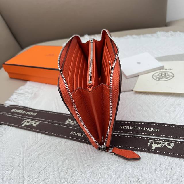 Size: 19*11*2颜色:橙色,浅兰,黄色,中兰,绿色,杏色,玫红,白色,黑色,大象灰, 海外进口手掌纹牛皮,手感柔软舒适。专柜对版,内有原厂代工码原版复刻搭配银色五金,精致优雅,油边平直顺滑内有两个大钞位,一个拉链口袋,12个插卡位