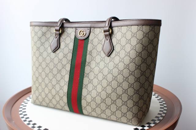 / 顶级原单原厂皮 新款专柜品质,顶级原单货,实物实拍,款号:631685,尺寸:38X28X14,材质,高级防水Pvc配棕色原厂牛皮,最新款Gg大购物袋,包包柔软