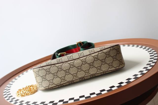 / 顶级原单原厂皮 Gucci新款专柜品质,顶级原单货,实物实拍,款号:735132,尺寸:25X15.5X6Cm,材质:意大利原厂牛皮配老花面料,好精致优雅的斜挎