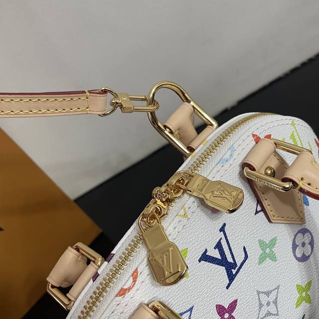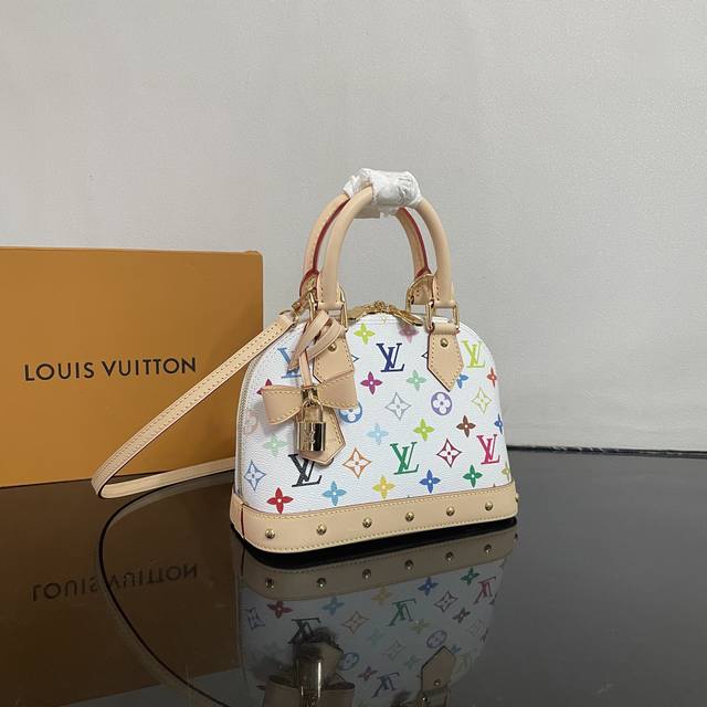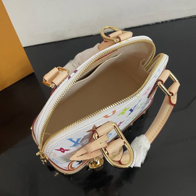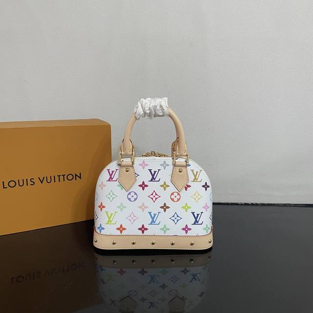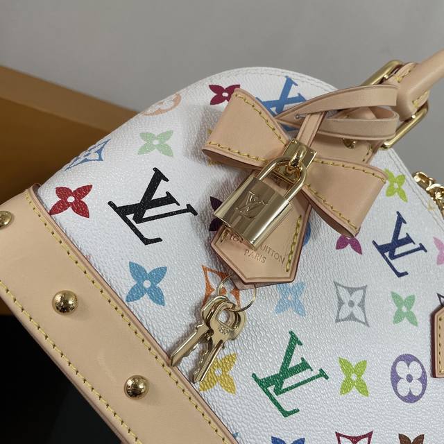 顶级原单M13078 本款 Alma Bb 手袋洋溢路易威登 X 村上隆合作系列的欢欣格调,巧妙回溯 1930 年代的装饰艺术风格设计。Monogram 涂层帆布渲染村上隆笔下的谐趣色调,Toron 手柄、包底、可拆卸肩带和 Lv X Tm 钥匙包融入经典牛皮革元素。尺寸:23.5 X 17.5 X 11.5 厘米 长 X 高 X 宽