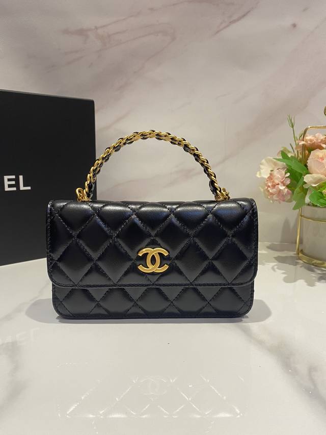 Ohanel 23P新款|金属手柄手机包 进口油蜡牛皮 质感柔滑细腻 首先就是手感舒适 超好 颜值不必说 直接闭眼入不会错 很好打理 也是百搭型 实现了单背斜挎腋下背手拎的效果简直就是福音很精致 值得珍藏