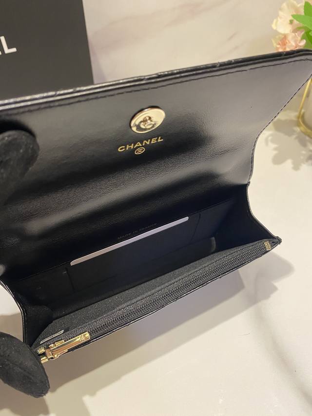 原厂皮 特级纯钢五金原厂皮 Triomphe标志印花羊皮拉链卡包 2024小赛 拉链锁闭,織物面料襯裡,銀色燙金與五金 1个扁平口袋...