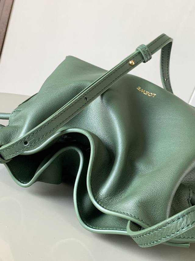新版本福袋迷你23Cm新款纳帕牛皮革Flamenco手拿包福袋采用拉绳收紧,并打上标志性的盘绕结这个版本采用纳帕牛皮革制成不得不说,这个品牌将皮质的柔软和实用主义都在Flamenco Knot上展现得淋漓尽致可以说是想要什么感觉都能在Flamenco Knot中找到了将抽绳包和托特包完美结合,带给女生们不一样的感觉虽然看上去简单不能再简单,但又很特别,随性有范这款包的名字与西班牙吉卜赛人的弗朗明戈舞蹈同名这恰好也代表着罗意威随性优雅又个性洒脱的设计风格皮料是光滑的西班牙小牛皮,手感特别软,反绒面皮革里衬很