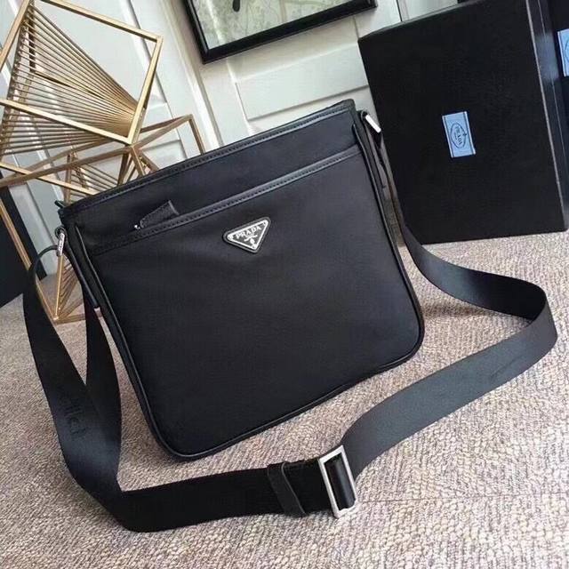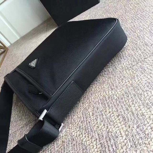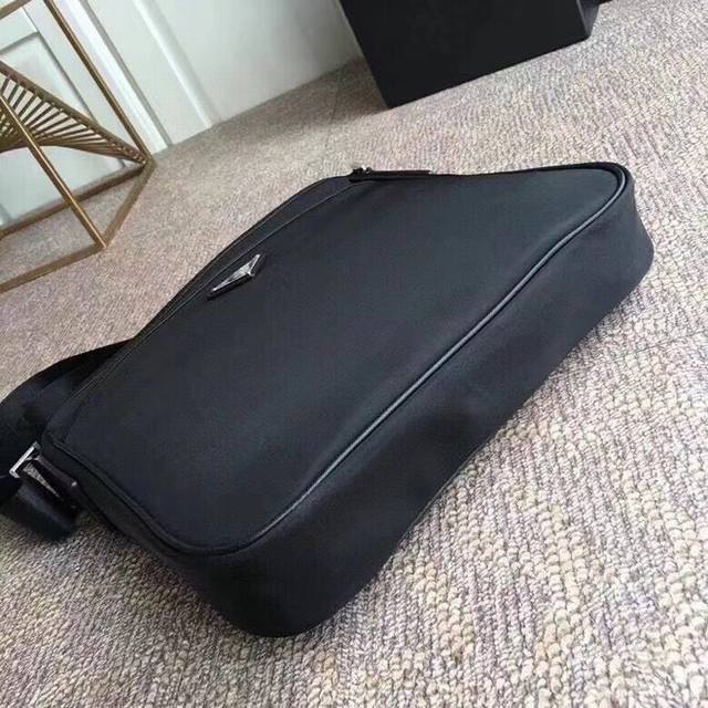 厂价 。 最高版本原厂皮顶级原单配专柜全套包装 Prada 2Vh797 男士尼龙斜挎包男士最受欢迎的邮差包之一不挑年龄不挑身材不挑服装轻便防雨容量适中出行随性搭配进口降落伞布料-防水防震正面三角搪瓷徽标十字纹牛皮饰边整体搭配时尚休闲却又不失稳重大方容量大放Ipad手机书本文件都Ok中间拉链格层+前后拉链隔层更是满足收纳精致需求干净简洁Size:有27*26*6Cm黑色