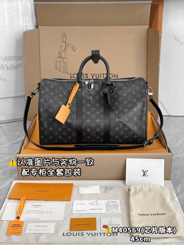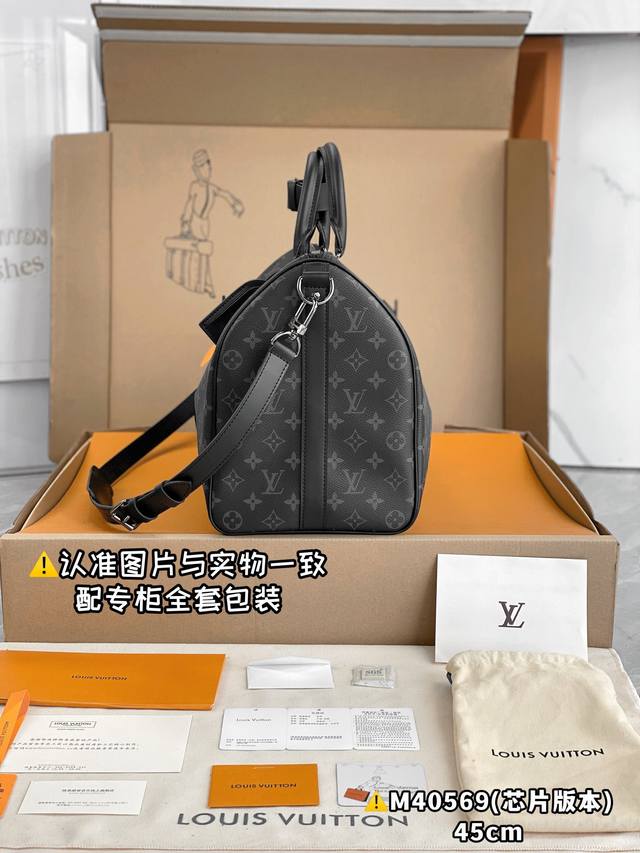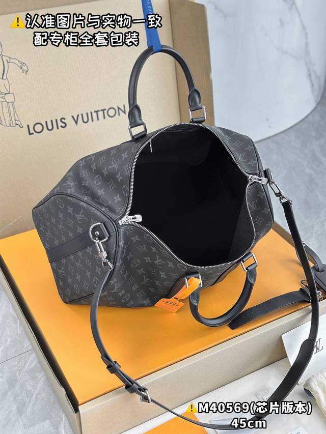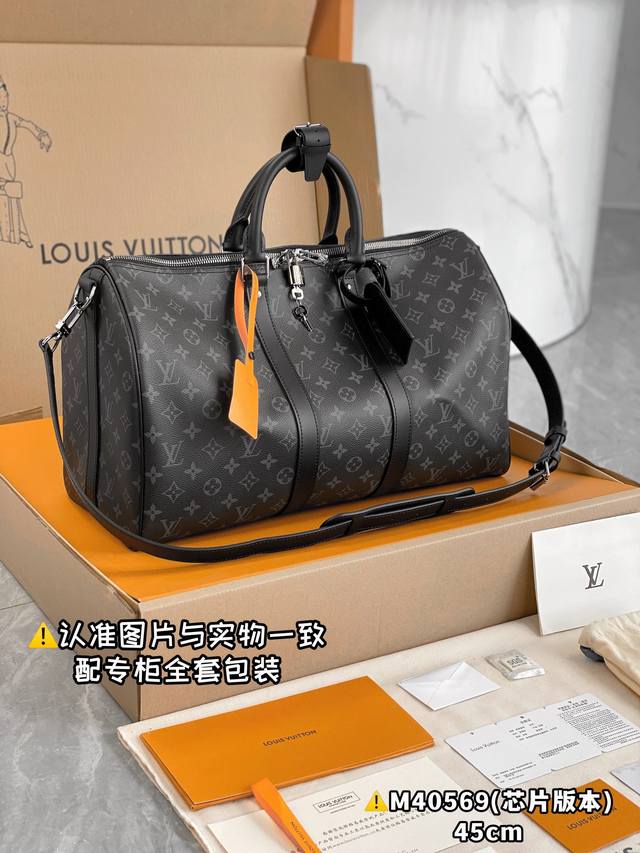 Keepall 45 旅行袋,由全新标志性 Monogram Eclipse 帆布裁制而成。自 1930 年以来,Keepall 系列包袋陪伴着一代又一代的旅行者云游四海。此款新版旅行袋配有多个提握舒适的皮革手柄、一条适用于闲适斜挎的包带以及一个闪亮的挂锁,短途旅行的伴侣。