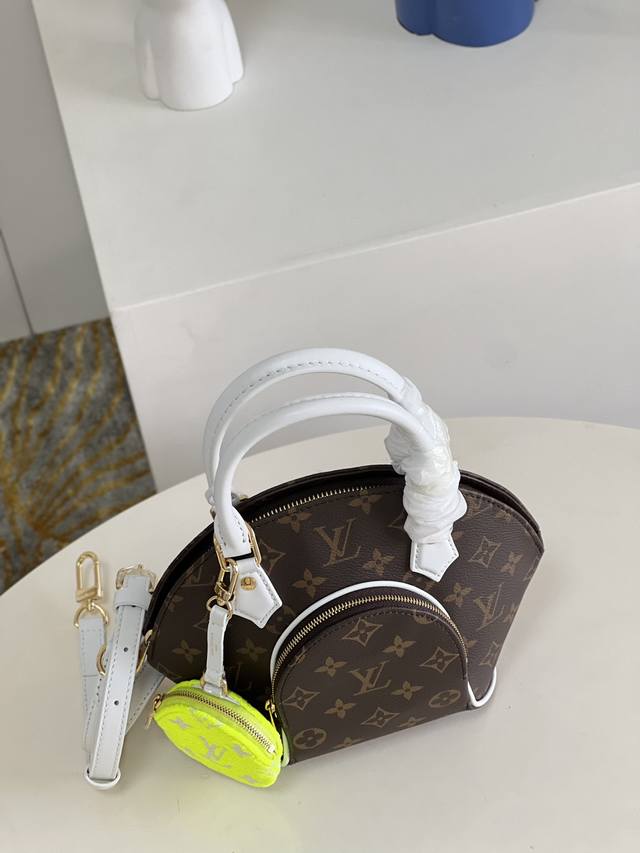 顶级原单M20752老花 Nicolas GhesquièRe 感悟 1997 年的设计魅力,创造此款 Ellipse Bb 手袋。Monogram 帆布裁出别致弧形,牛皮革塑造饰边和手柄。随附圆形拉链零钱包呈现网球的经典色彩,为精巧设计再添意趣。详细特征22.5 X 19.5 X 10 厘米 长度 X 高 X 宽