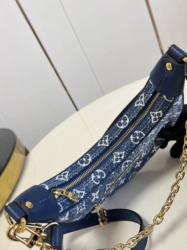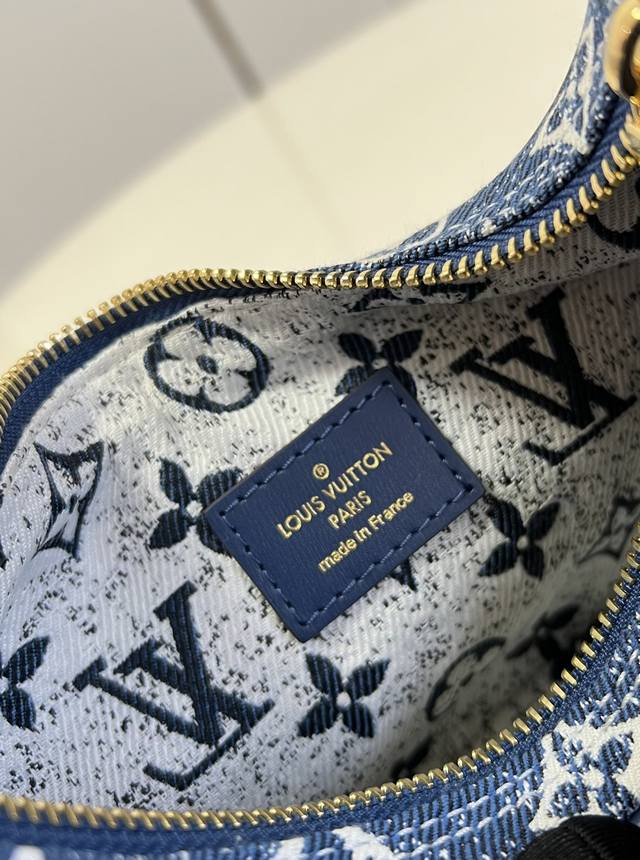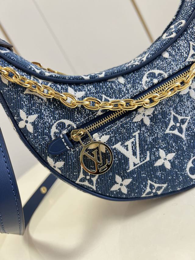 顶级原单 独家实拍M81166对版 M80198 Loop 半月形月亮法棍包首次亮相于 Cruise 早春秀场,以褪色效果丹宁布烘托 Monogram 提花织纹,搭配皮革饰边和肩带。Lv Circle 拉链头和可拆卸链条点睛考究细节。
