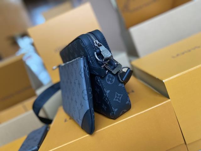 顶级原单 M69443 Trio 邮差包由 Monogram Eclipse 帆布与 Monogram Eclipse Reverse 帆布制成。标志性的同色调