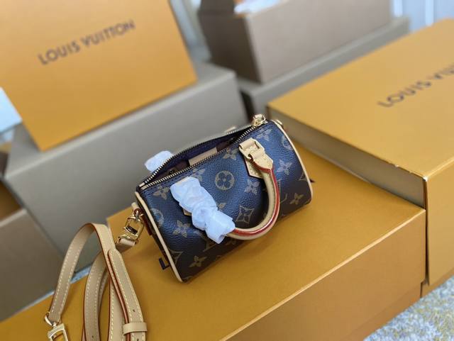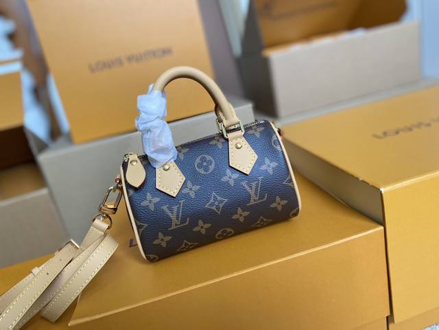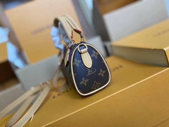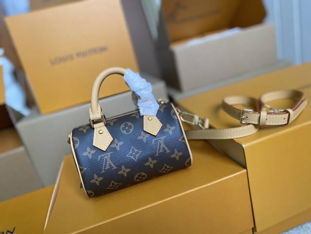 顶级原单 M81085 Nano Speedy 手袋浓缩路易威登经典 Speedy 手袋构型,以 Monogram 帆布塑造玲珑设计,搭配做旧牛皮革细节和金属件