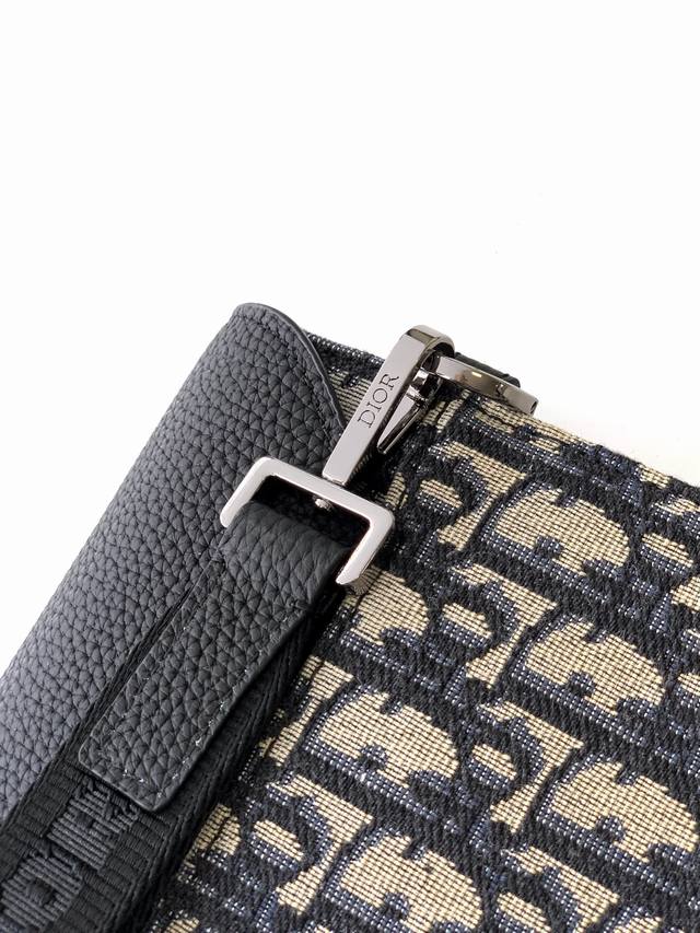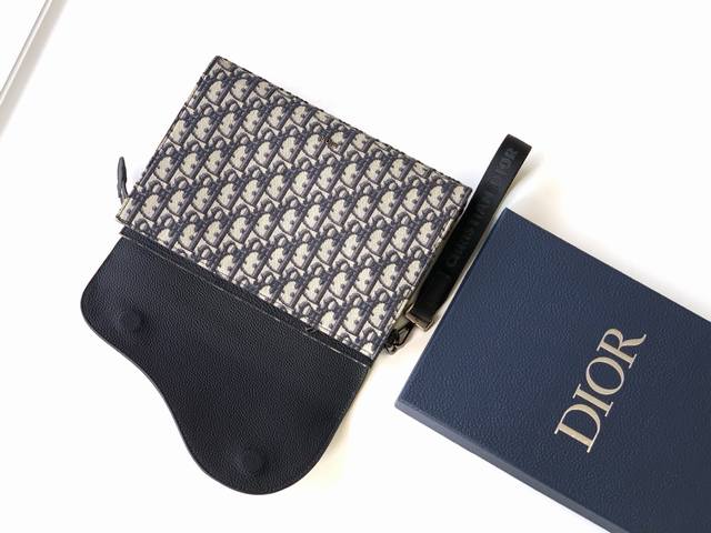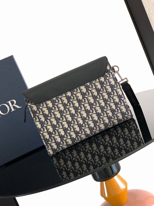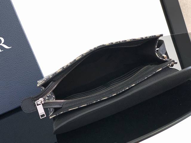 A5 三角手拿包是 Dior 的全新主打单品。采用米色和黑色 Oblique 印花面料等材质精心制作,搭配黑色粒面牛皮革马鞍廓形翻盖,宽敞的拉链隔层可收纳手机,另外还设有卡槽。搭配可拆卸的腕带,便于手提或放入手袋中。