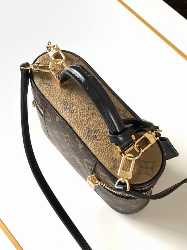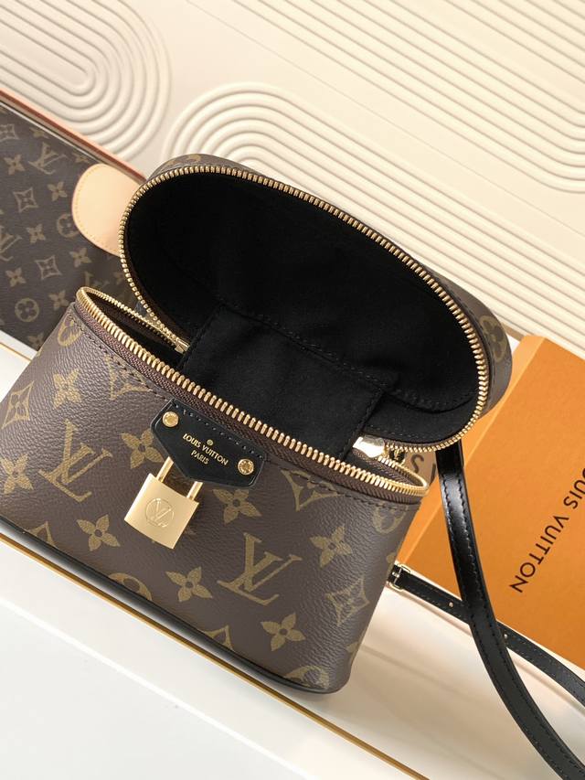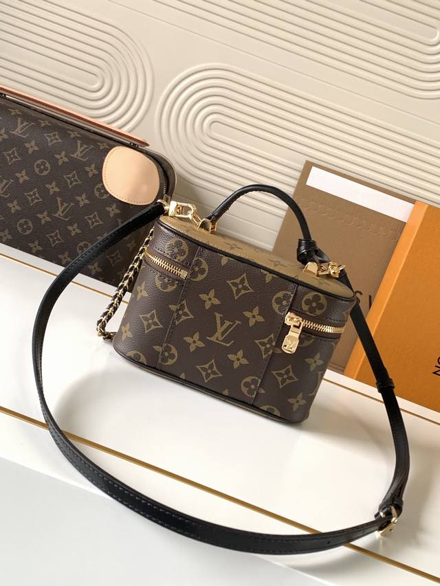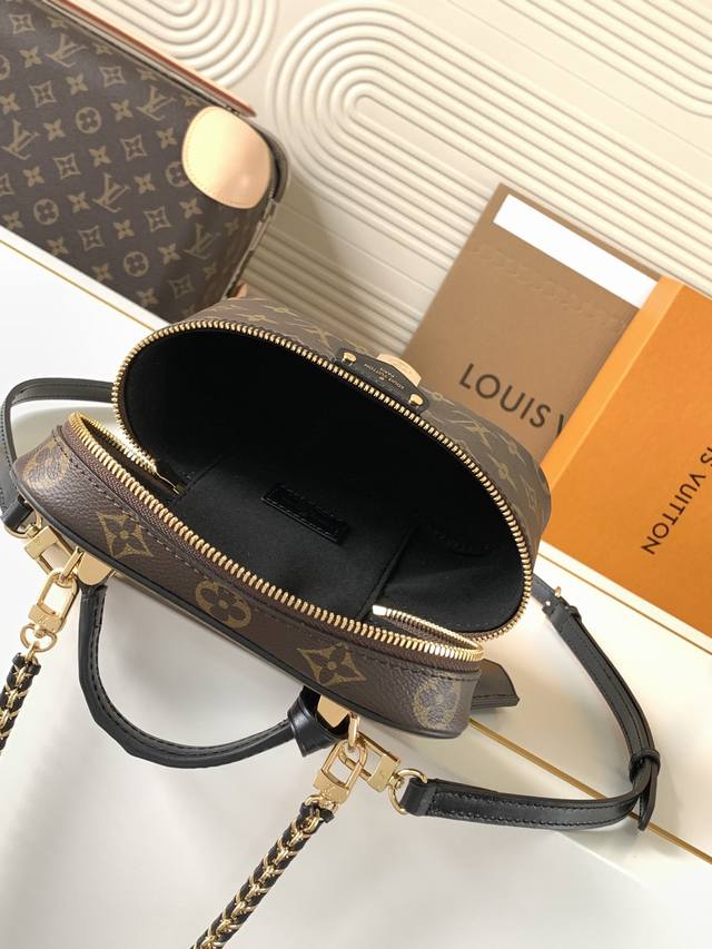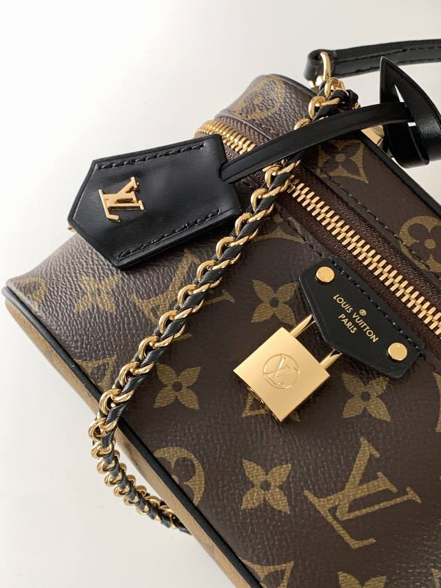 动态芯片 M47125新版 顶级原单 独家背景实拍 Vanity Chain Pouch 手袋向经典化妆箱汲取灵感,以 Monogram 帆布诠释旅行精神。顶部