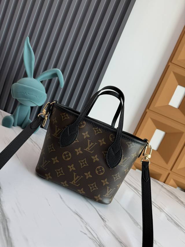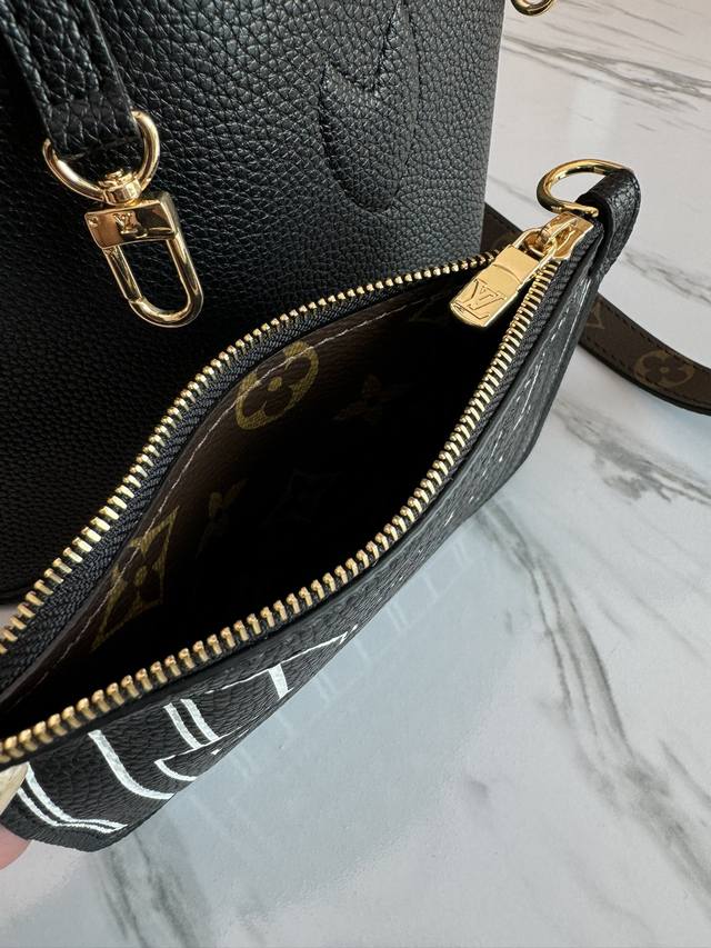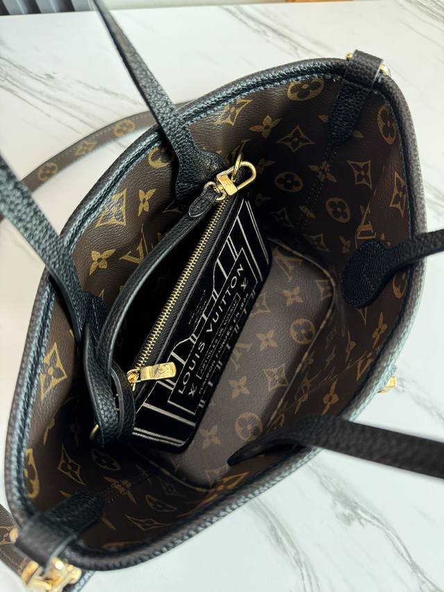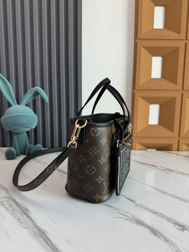 Neverfull BandoulièRe Inside Out Bb 手袋本季演绎经典设计的双面版本,以标志性 Monogram 帆布和粒面皮革分饰正反面。可拆卸拉链袋既可单独使用,亦可悬挂于外部。可拆卸肩带方便斜挎,耀目金属件再添考究细节。