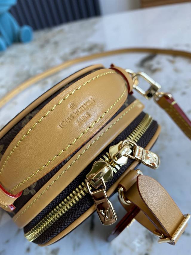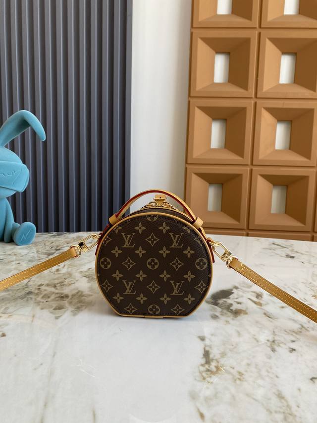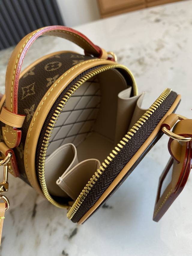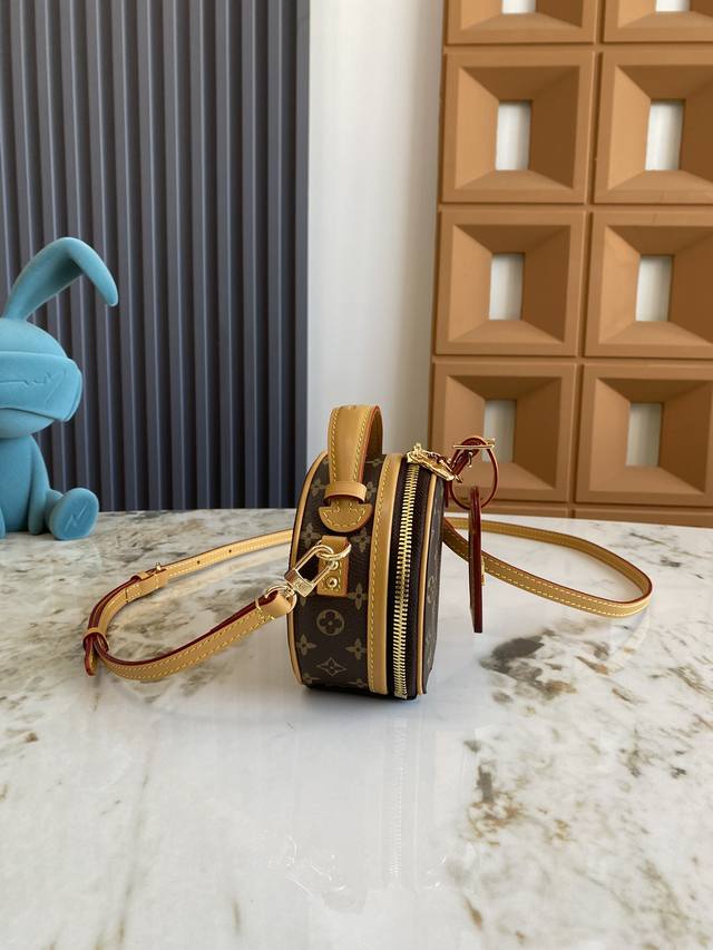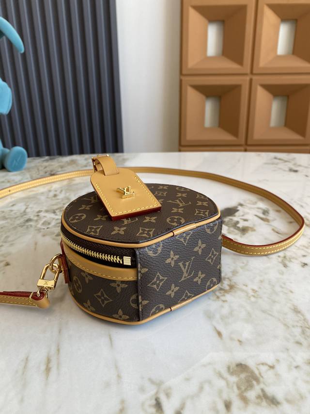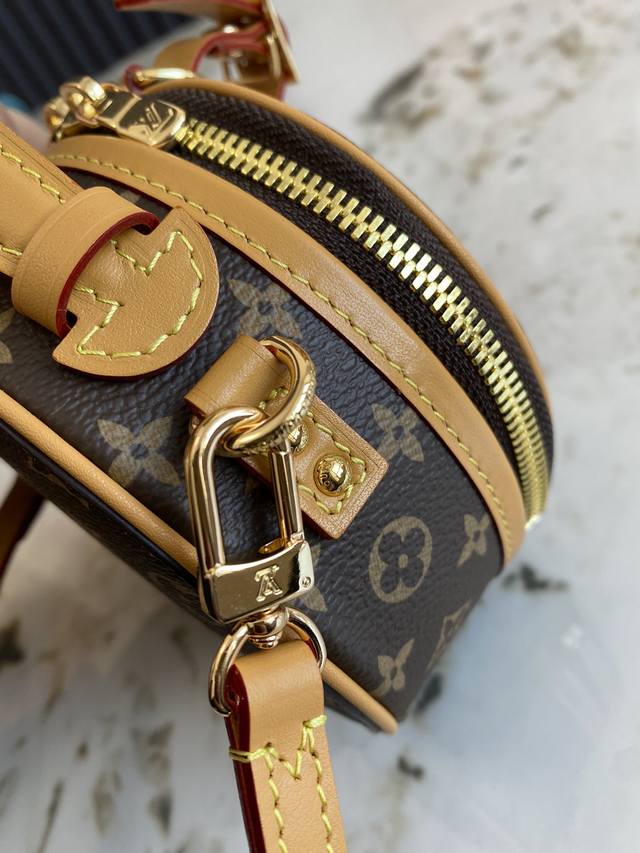 M83575老花 M83614黄花 本款 Mini Bote Chapeau 手袋采用 Monogram 帆布塑造经典构型,以皮革名牌和 Malletage 绗缝内衬彰显品牌传承。拉链开启大号风琴隔层,巧用可拆卸肩带,手提、肩背或用作腰包皆宜。13.0 X 12.0 X 6.5 厘米 长 X 高 X 宽