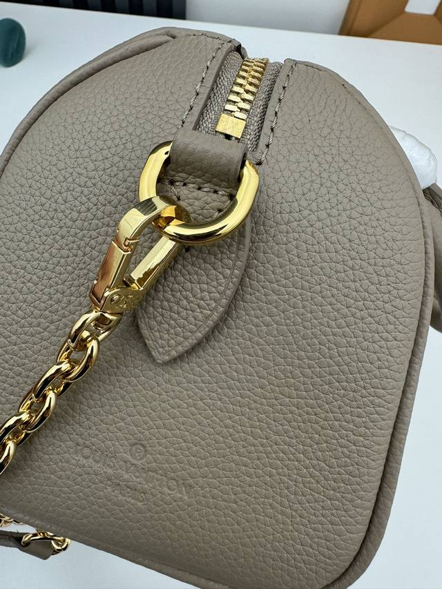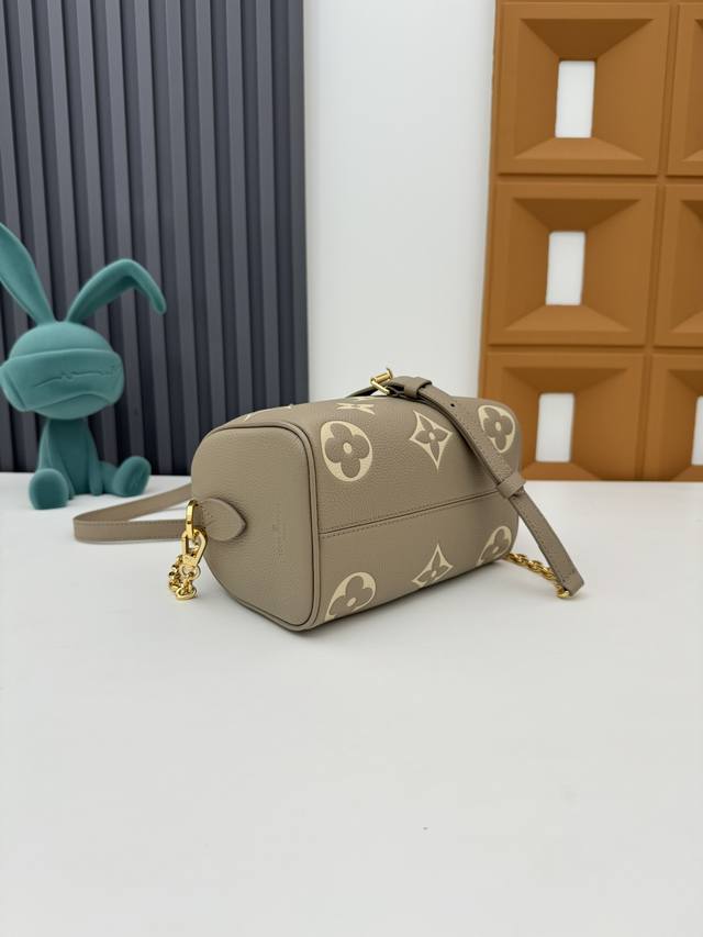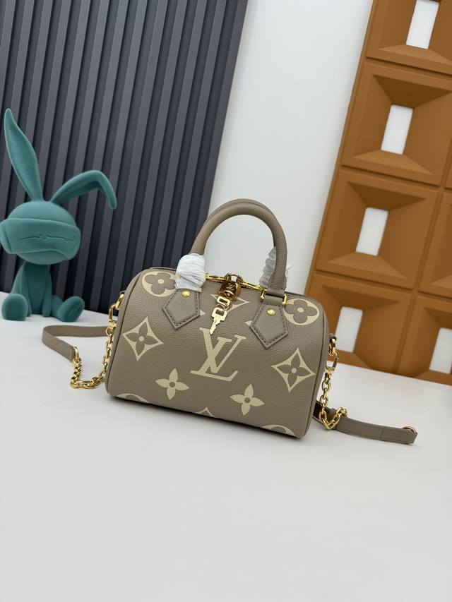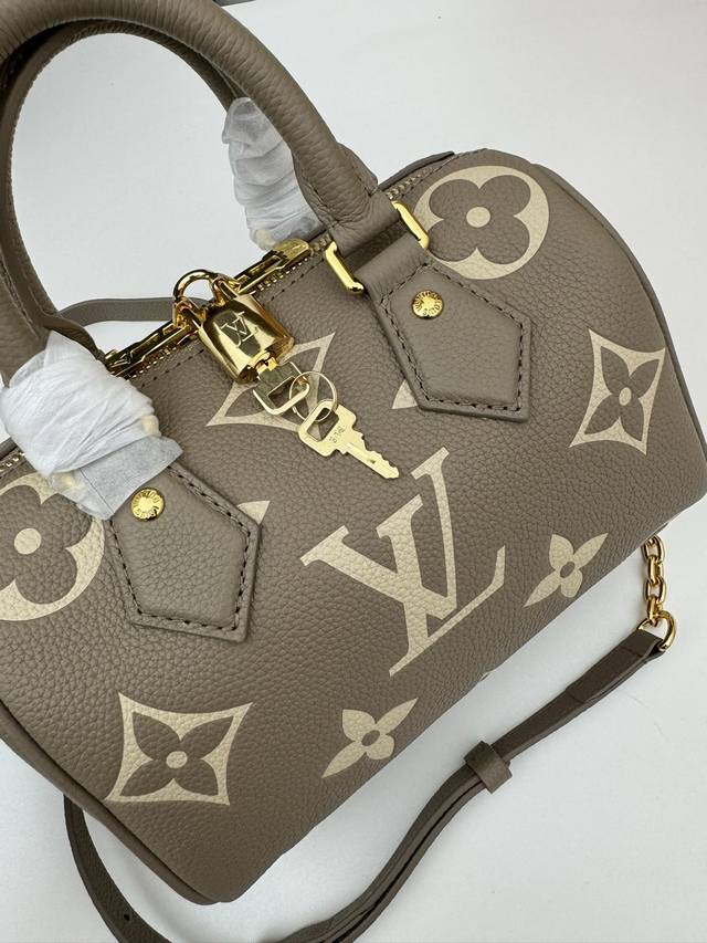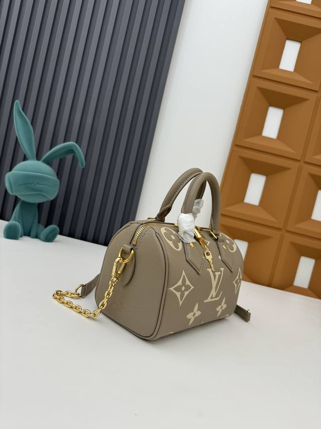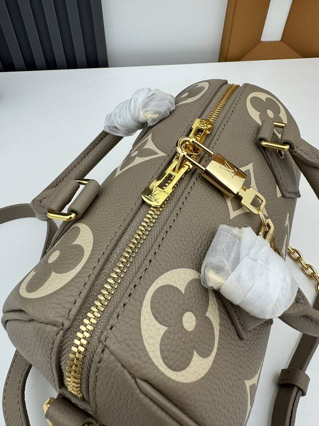 M46875冰白粉 M58953黑色 M46883冰白蓝 46575大象灰 M46397米白粉印 由双色 Monogram Empreinte 皮革制成,饰有 Lv 标识与 Monogram 花卉图案,此款 Speedy BandoulièRe 20 手袋堪称摩登经典之作。设计灵感源于 1930 年代的 Speedy 旅行箱系列,还原最初的造型与铰接式手柄。配有皮革金属链包带,便于肩背和斜挎。