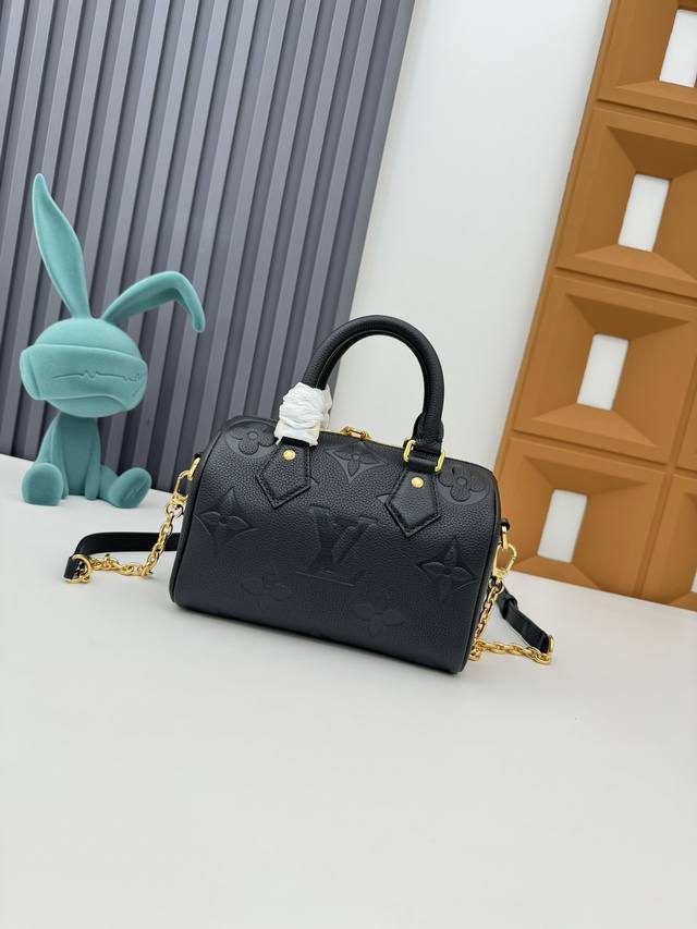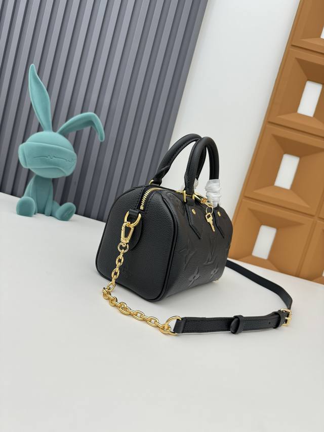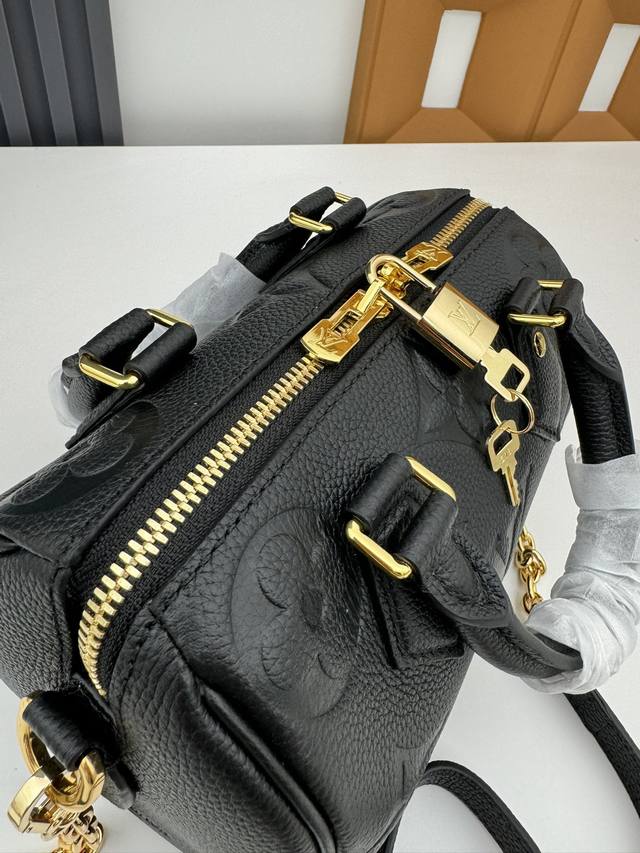 M46875冰白粉 M58953黑色 M46883冰白蓝 46575大象灰 M46397米白粉印 由双色 Monogram Empreinte 皮革制成,饰有 Lv 标识与 Monogram 花卉图案,此款 Speedy BandoulièRe 20 手袋堪称摩登经典之作。设计灵感源于 1930 年代的 Speedy 旅行箱系列,还原最初的造型与铰接式手柄。配有皮革金属链包带,便于肩背和斜挎。