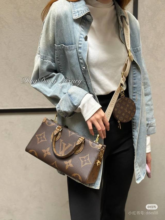 顶级原单全钢五金M46653老花本款 Onthego 托特包融合 Giant Monogram 和 Monogram Reverse 帆布,焕新演绎 East