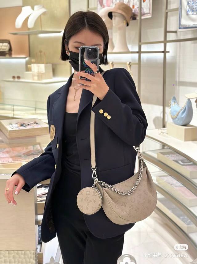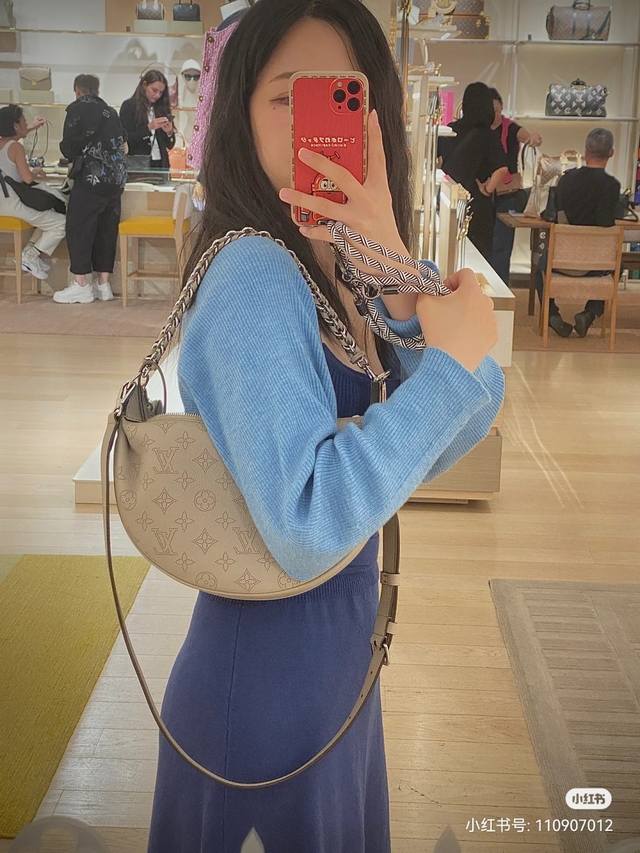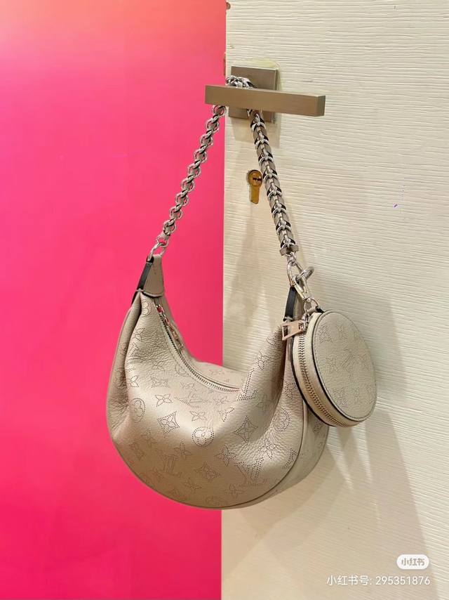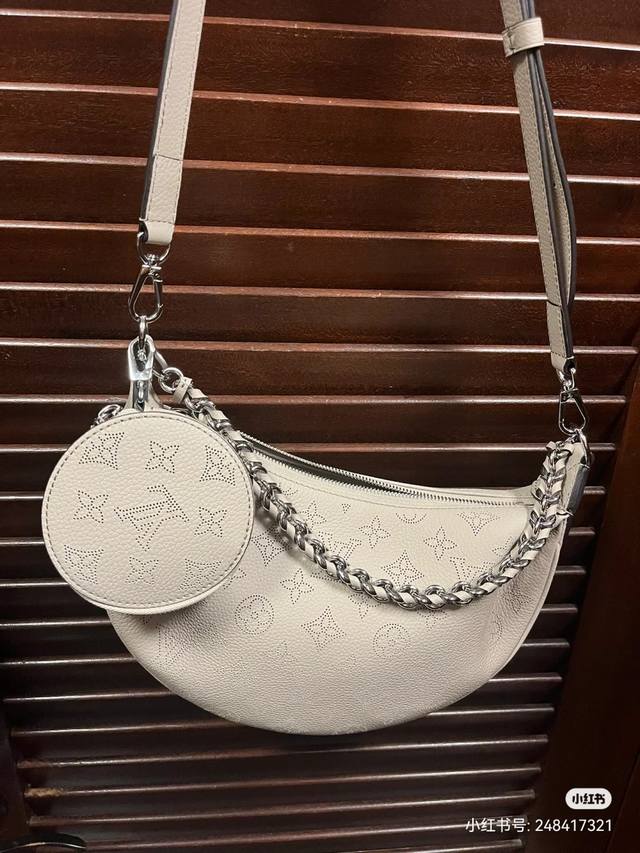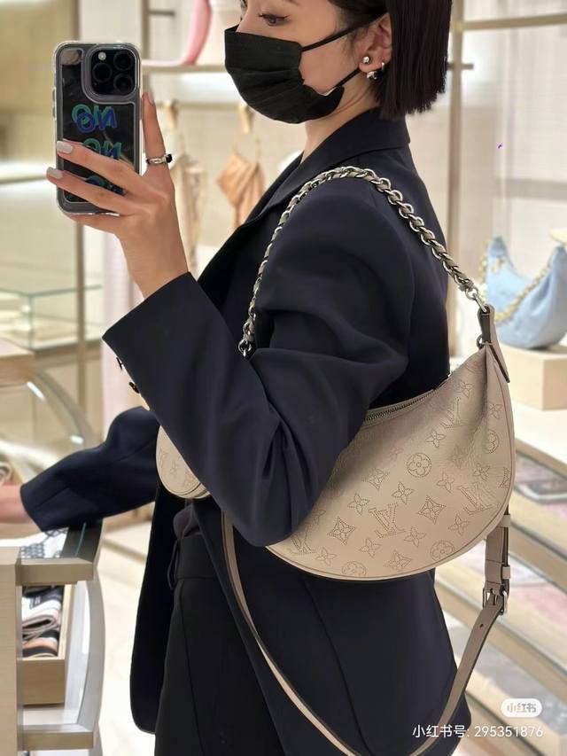 原厂小牛皮型号:M22819黑色 M22820 灰色 M22959蓝顶级原单 Baia 小号镂空月亮包,这款手袋取材柔软垂坠的镂花穿孔牛皮革,以舒适贴身的半月形轮廓加入 Mahina 系列。皮革和金属编织手柄结合可调节长肩带,实现肩背和斜挎选择,零钱包丰富细节。26.0 X 17.0 X 7.5 厘米 长 X 高 X 宽