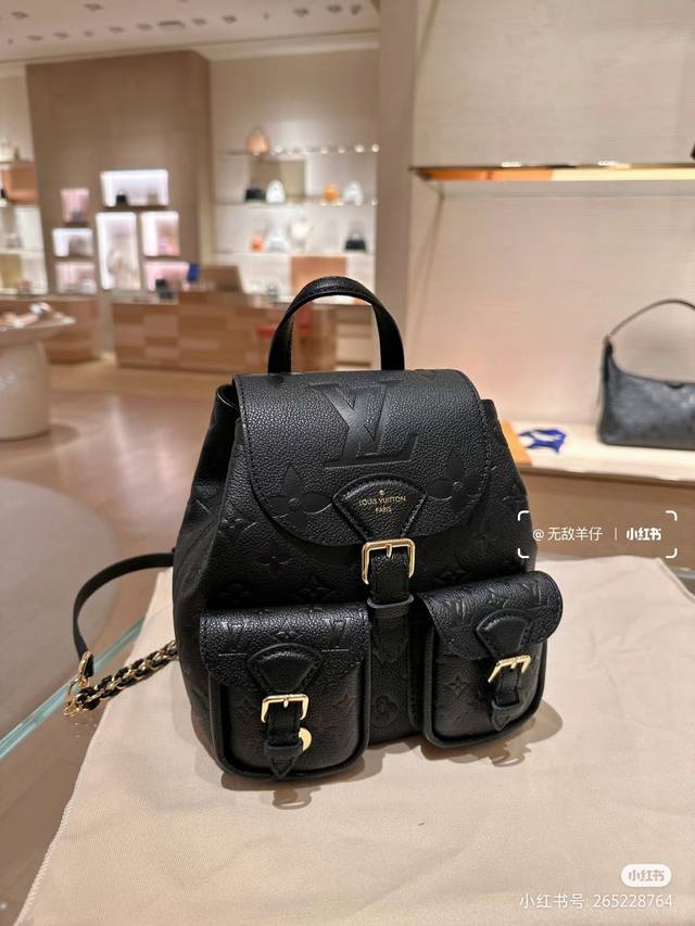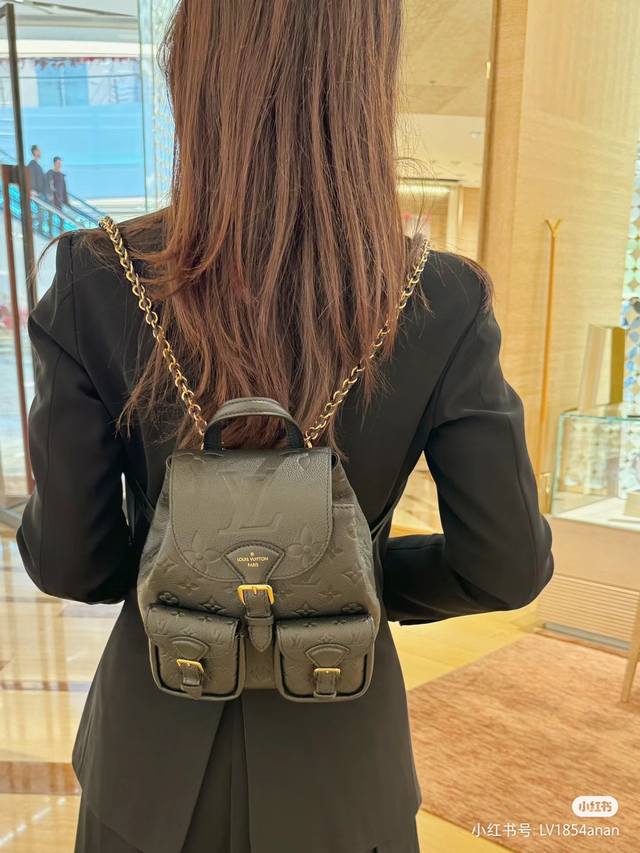 编码芯片,全钢五金 型号:M47072黑压花本款 Backup 双肩包取材 Monogram Empreinte 牛皮革,低调铺陈 Monogram 压纹。可拆卸并调节的肩带实现单肩和双肩背携,顶部手柄和编织链条提供手提或斜挎选择。20 X 22 X 14厘米 长度 X 高 X 宽