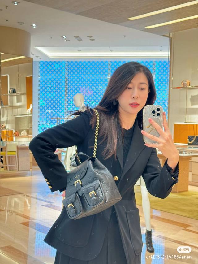 编码芯片,全钢五金 型号:M47072黑压花本款 Backup 双肩包取材 Monogram Empreinte 牛皮革,低调铺陈 Monogram 压纹。可拆
