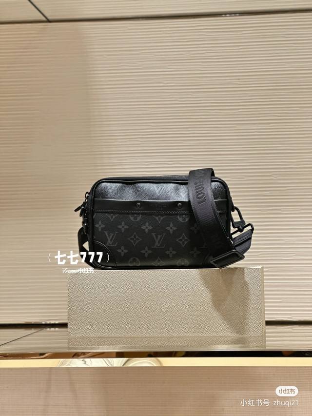 大号出货型号:M46955新款邮差包本款 Alpha 邮差包取材 Monogram Eclipse 帆布,以摩登笔触演绎玲珑构型。拉链隔层确保物品安全无虞,前袋