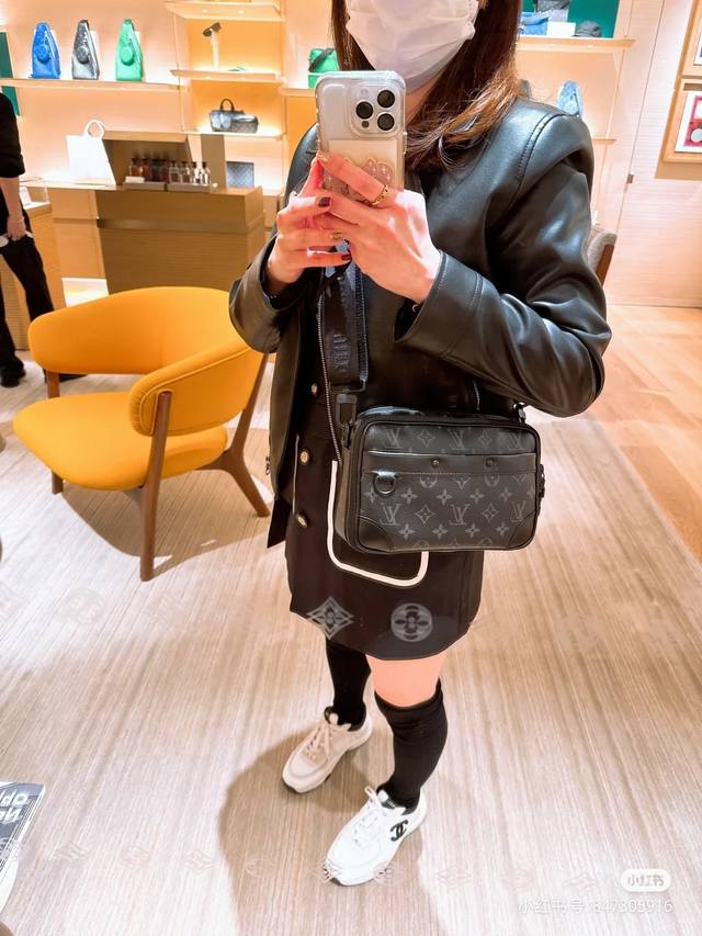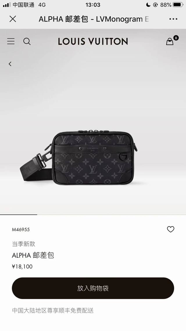 / 大号出货型号:M46955新款邮差包本款 Alpha 邮差包取材 Monogram Eclipse 帆布,以摩登笔触演绎玲珑构型。拉链隔层确保物品安全无虞,前袋