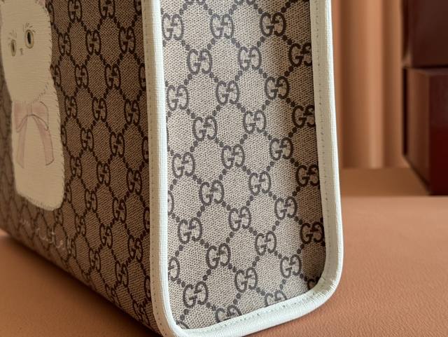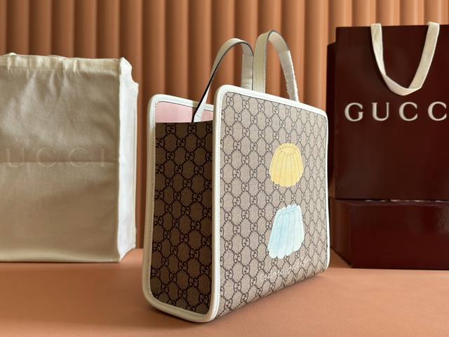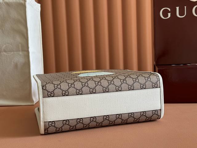 配置专柜全套设备 儿童动物印花托特包。早春儿童系列匠心融蕴圆形互扣式双G和俏皮童趣的青蛙刺绣等设计巧思,趣致演绎精裁风尚。全新成衣单品和配饰以不同的颜色和材料焕新呈献,趣致彰显童趣天真的品牌叙事理念。这款托特包匠心缀饰精美的Gucci动物印花,巧妙融入橙色撞色滚边,尽显设计巧思。奶油色和米色Supreme帆布,橙色Supreme帆布滚边,由Walter Harrison Cady设计的Gucci动物印花,尼龙衬里,开口内袋,双提手 8.5厘米高 磁力按扣开合。