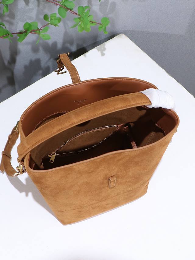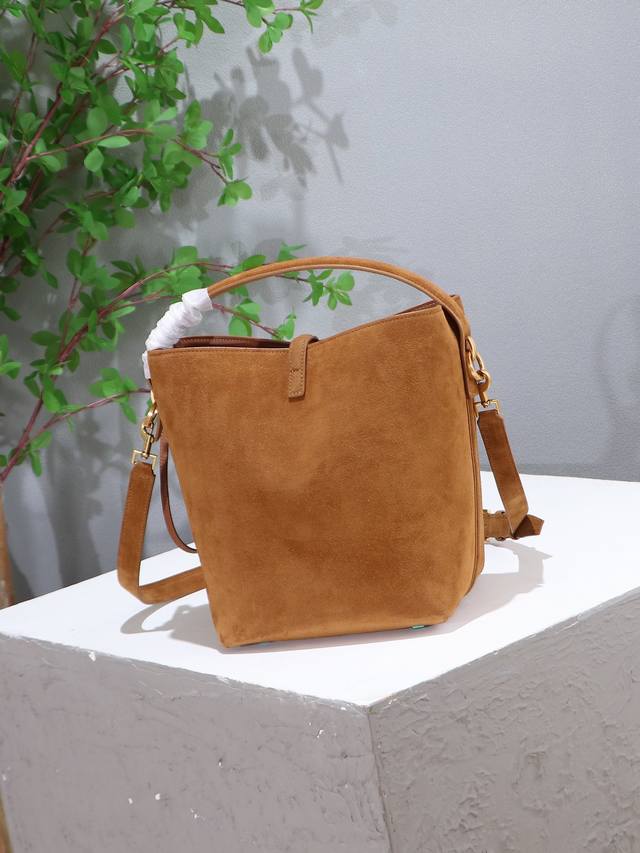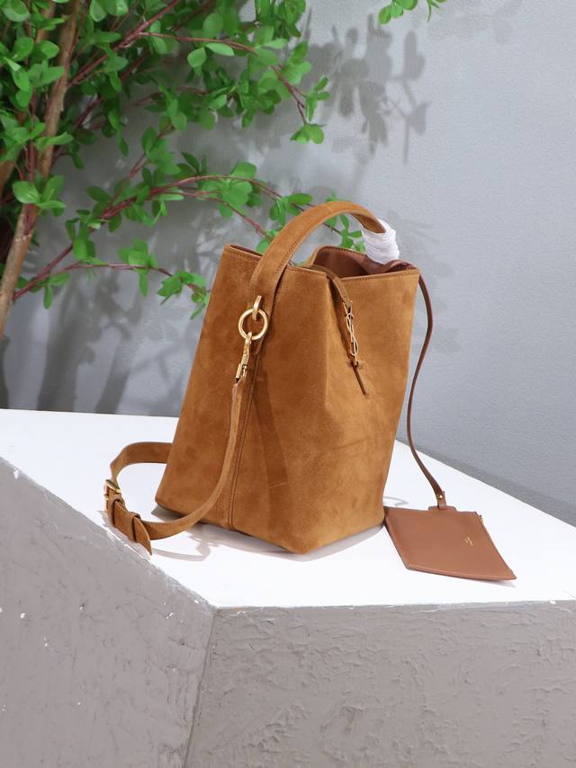 Le 5A7系列之新款超好看水桶包 带手提_全新包型,采用意大利的麂皮和牛皮,包身轮廓简洁、立体,看上去硬挺又不会太凌厉,底部带有个金属脚钉,搭配经典标志性金属Logo的插入式包扣,整体给人一种既经典优雅,又很时髦现代的独特气质!