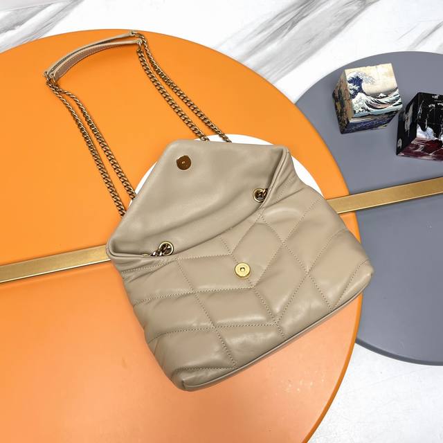 Loulou Puffer Mini_迷你号双链条包来袭!整包采用柔软的意大利小羊皮制作,搭配Y家斜条纹绗缝工艺,拥有柔和质地的前翻盖袋,搭配可拆卸肩带,可以做收纳包,还可以使用调节扣来做腋下包,轻松实现一包多用!