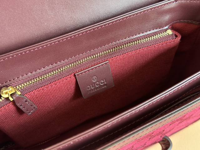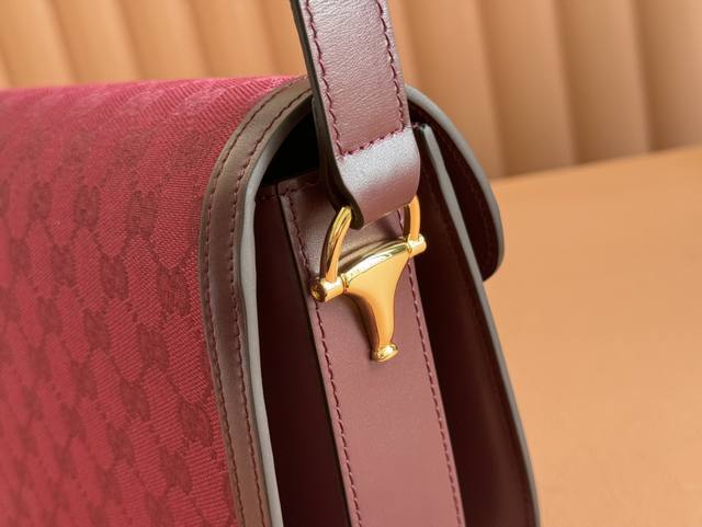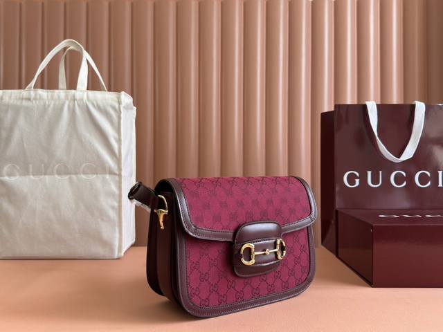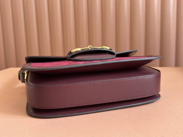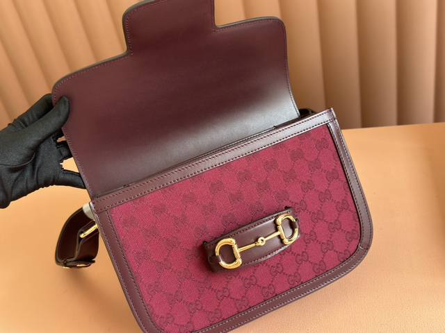 配置专柜全套包装 Gucci Horsebit 1955系列肩背包。Gucci Horsebit 1955系列肩背包在早春系列中惊艳亮相,以新颖视角演绎经典设计。这一手袋延用了六十余年前经典单品的线条与造型,将经典细节与现代精神巧妙融合,强调了马衔扣这一品牌标志性设计元素。灵感源自马术世界的双环和连接条两个元素构成的这一设计图案已经成为品牌耀眼的标志性元素之一。在这款小号翻盖肩背包上,这一配件与织纹酒红色皮革材质相映成趣,同时配以可调节肩带,可在肩背和斜跨之间自由转换。拥有多种穿搭方式和风格的单品是所有成